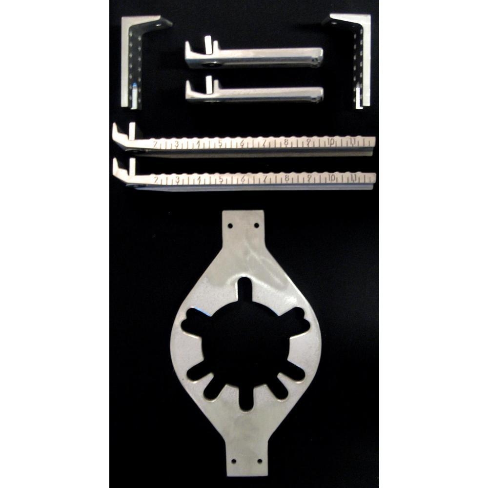 The Wheel Fit™ Professional 56 will fit most all 5- and 6- lug vehicles including bolt circles ranging from 5-5 up to 5-150mm and 6-4.5 up to 6-5.5. The Wheel Fit™ Ultimate kit with both faceplates to fit most all 4-, 5-, and 6-lug vehicles. This kit will extend from 14" - 20" in tire bead diameter. It will also extend from 6.5" - 16" in width. Backside setting is completely adjustable within the constraints of the tool. A ruler mark is engraved on the side of the tool to indicate backside setting and width measurements.