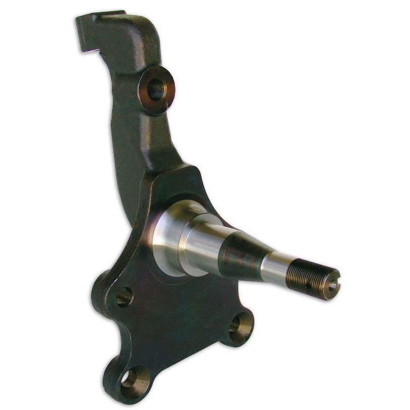 The RideTech 2" dropped spindle is a heavy duty forging that has about 1-3/4 " taller ball joint to ball joint than the OEM spindle. This basic geometry change increases the camber gain during suspension compression that will allows the tire to lean into the turn instead of away from the turn. The RideTech spindle also has a pin height that is 2" higher than the OEM spindle. This means that your car will sit 2" lower than it would with the OEM spindle. For use with Disc Brakes.