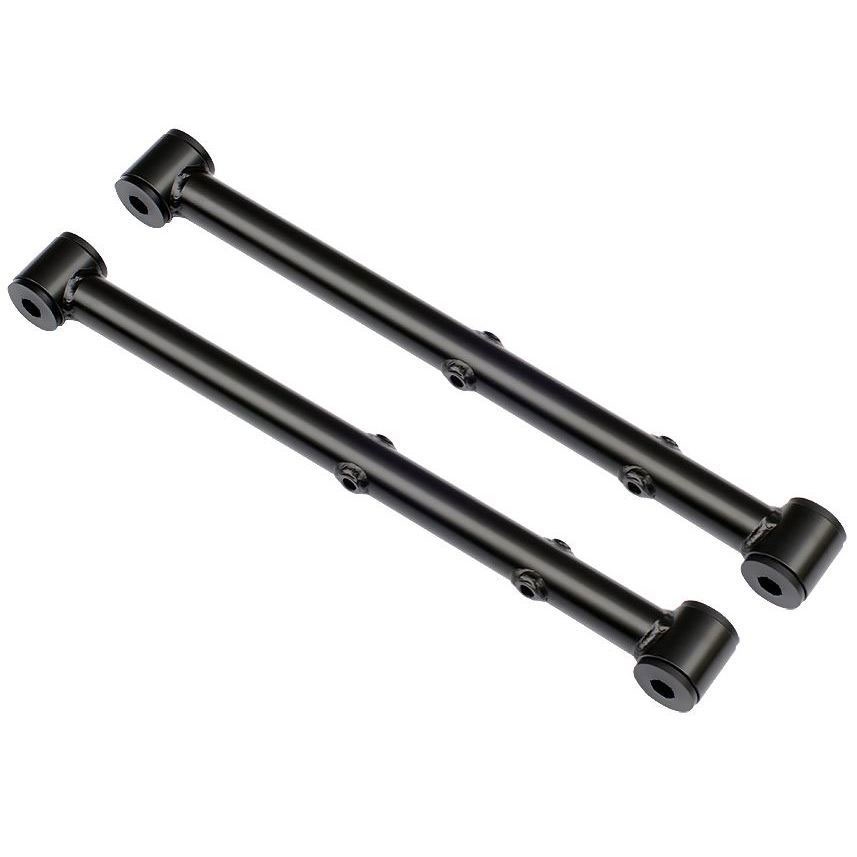 These rear lower StrongArms are a direct replacement for the stock trailing arms for 1964-72 GM A-Body cars. They utilize R-Joint Technology and provide added strength to help get the power to the pavement. 1964-72 GM A-Body includes Chevelle, Cutlass, El Camino, F85, Grand Prix, GS, GTO, LeMans, Malibu, Monte Carlo, Skylark, Special, Sportwagon, Tempest and Vista Cruiser.