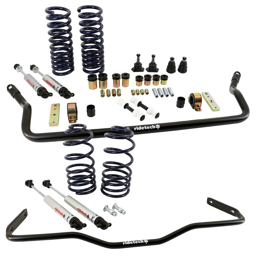 RideTech makes this StreetGRIP suspension to your 1968-72 GM A-Body muscle car including Chevelle, Malibu, Cutlass, Skylark, GTO, 442, Tempest and Lemans. The complete StreetGRIP kit updates your car with modern handling, great ride quality and lowered ride height StreetGRIP suspension is perfect for restorations as well as restomods and pro-touring cars. StreetGRIP is easy-to-install. A direct replacement for original style suspension, StreetGRIP includes everything that you need including lowering springs, adjustable shock absorbers, high performance and bushings, heavy duty;sway bars, tall ball joints, hardware and instructions. Whether it's eating up highway miles or carving up a curvy road, StreetGRIP improves your driving experience.
