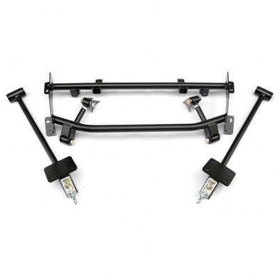 After driving a new Camaro or Mustang, the compromises of a standard leaf spring suspension just doesn’t cut it! Now there is a solution. This RideTech 4-Link System is specifically designed for use with ShockWaves or CoilOvers. The ride height of your car is typically lowered by approximately 2". The ride quality is dramatically improved over stock. The area of largest improvement is the handling and cornering performance. The system eliminates the OEM leaf spring and replaces them with a 4-Link rear suspension. The 4-Link bars offer more precise positioning of the rear axle to eliminate flexing and increase stability through the corners. When combined with a ShockWave or a Ridetech CoilOver front suspension kit your classic muscle car can now enjoy the benefits of modern handling and ride quality technology. The bars are positioned to the inside of the frame rails to provide maximum tire clearance. The installation is virually bolt on requiring only two brackets be welded to the axle tube. The R-Joint rod ends combine the best qualities of low friction movement, lateral stability, full range articulation and quiet operation into one special bearing that is as home on the street as it is on the racetrack! If you want your classic muscle car to ride and drive like a modern performance car, the Bolt-On 4-Link system is the perfect solution! RideTech uses their cars in a wide range of performance driving environments, as well as plain old highway time. Their 4-Link systems have proven time and time again to provide not only ground shaking traction, but a great highway ride as well.