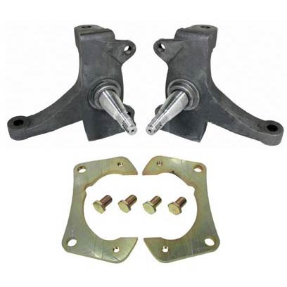 2.5" Drop Spindles allows a lowered stance while maintaining suspension travel. The modular design allows for variety of brake options incluing Baer, Wilwood or the stock HD brakes (1.25" wide rotors).