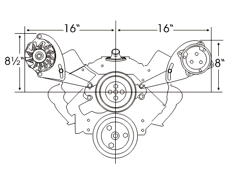 This bracket was designed for 1962 and earlier Corvettes. It bolts to the water pump and exhaust while still allowing the use of the factory front motor mount.