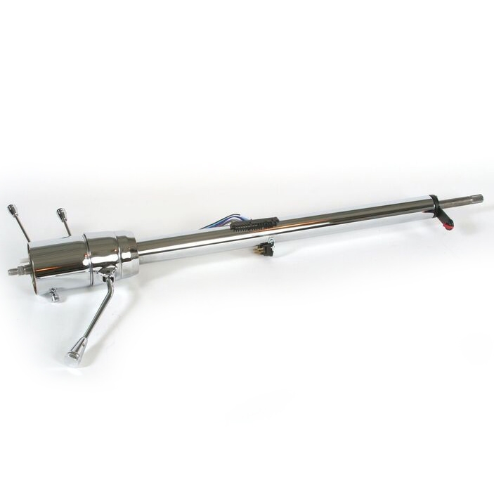 This retrofit column is designed to fit your 1963-64 Impala and does NOT require modification to your original vehicle to install. Simply remove your old column, saving your original under dash mount and floor mount. Using an ididit installation kit, install your new steering column in place of the old. A new aluminum dash bezel is included with the 1963-64 column. These columns come complete with a neutral safety switch(shift indicator not included). The shift pattern on the column allows you to use either a 3 or 4-speed automatic transmission (except early Powerglides, as they have a reverse pattern transmission). A shift linkage(new or original)is required for installation and will attach to the lower shift arm provided on the column. Add an aftermarket wheel (using an adaptor)or original wheel but keep in mind that an aftermarket wheel may push the wheel closer to the driver and the original wheel will increase the overall length of the column towards the driver.