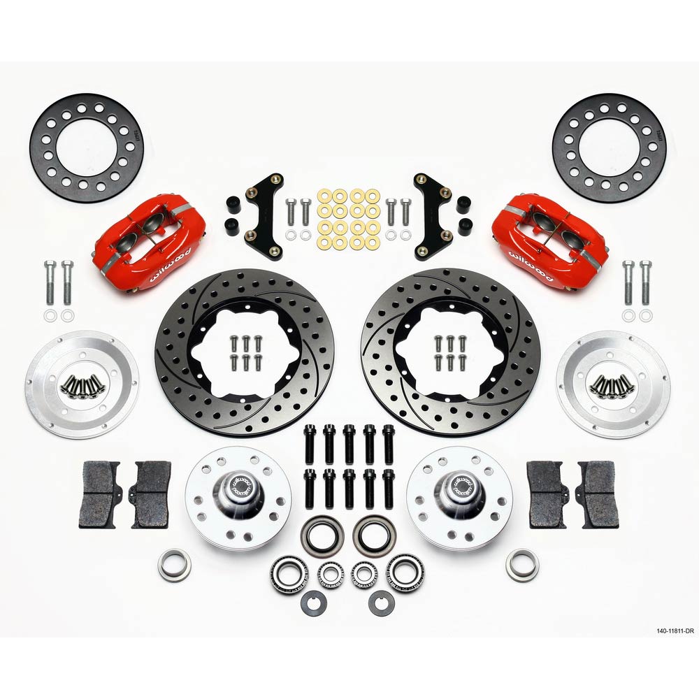 1949-62 Chevy FS Car 11" Drill Dynalite Front Brake Kt - Red