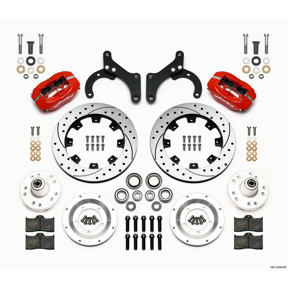 1959-64 Impala 63-64 Vette 12" Drilled Front Brake Kit - Red