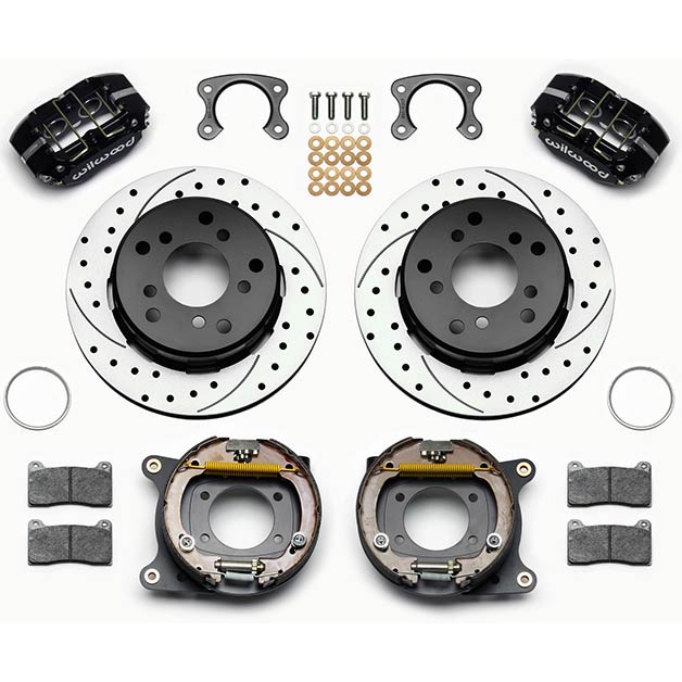 Small 9" Ford 12.19" Drilled 2.36" OS Rear Brake Kit - Black