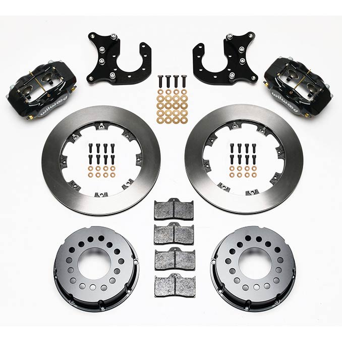 FDL Pro-Series rear disc brake kits provide a complete solution for popular muscle car rear axles on applications where individual wheel parking brake assemblies are not required. Forged billet Dynalite four piston calipers, two-piece hat and rotor assemblies, and high friction pads provide optimized and balanced braking for all types of off-road, competition, and other customized applications. FDL calipers can be optioned with a full range of finishes to reflect personalized>