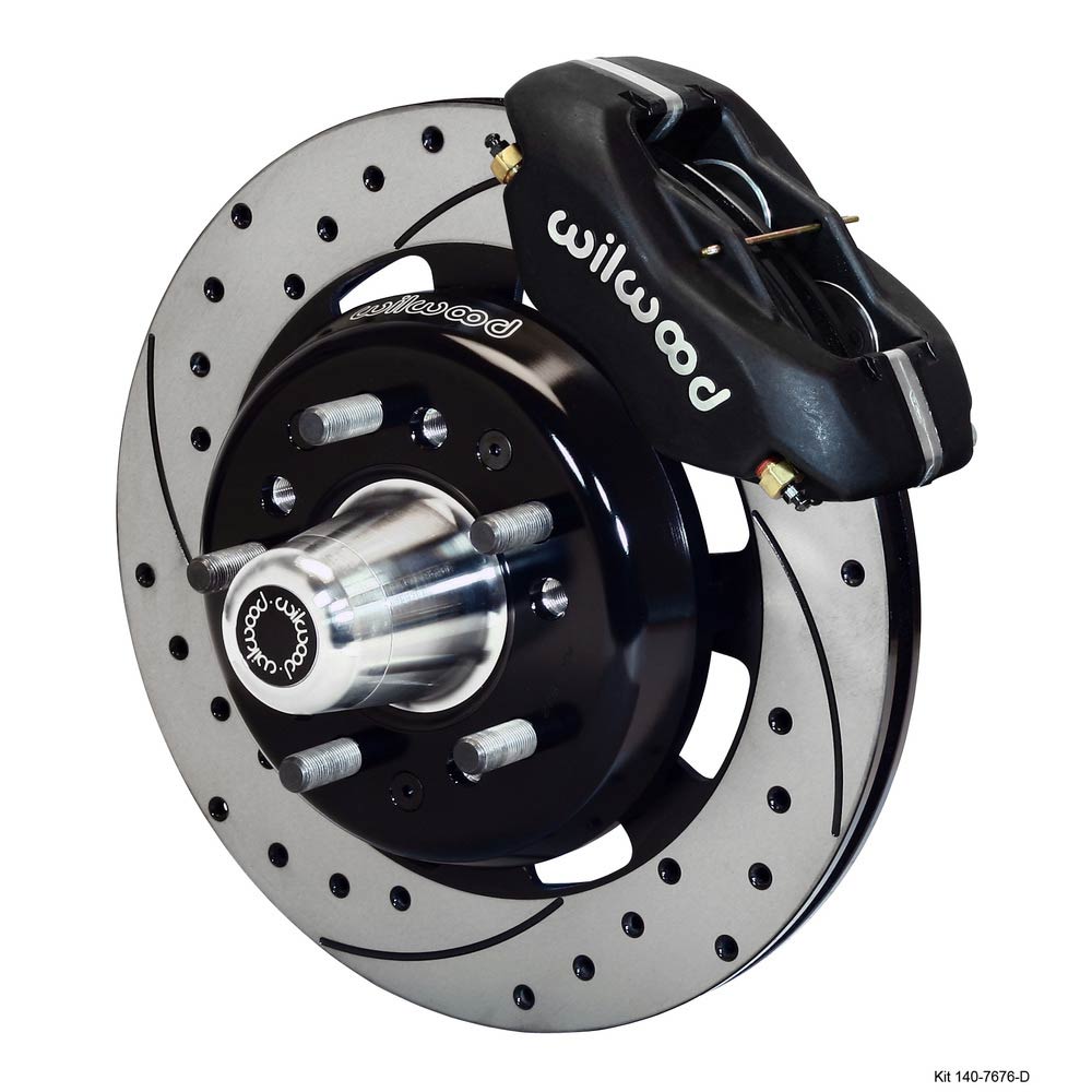 FDL Big Brake Front Hub Kits provide the added advantage of larger diameter brake rotors for traditional non-ABS spindles on American muscle cars and vintage rods. Forged billet Dynalite calipers, 12.19” diameter rotors, and high performance Wilwood brake pads generate big brake stopping power to compliment wheel, tire, and suspension upgrades on all types of custom show and performance street / strip machines. A full range of options for caliper finish and rotor design provide custom builders with the ability to personalize the>