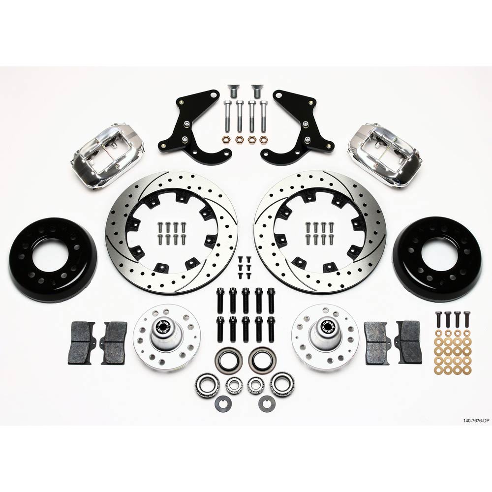 FDL Big Brake Front Hub Kits provide the added advantage of larger diameter brake rotors for traditional non-ABS spindles on American muscle cars and vintage rods. Forged billet Dynalite calipers, 12.19” diameter rotors, and high performance Wilwood brake pads generate big brake stopping power to compliment wheel, tire, and suspension upgrades on all types of custom show and performance street / strip machines. A full range of options for caliper finish and rotor design provide custom builders with the ability to personalize the>
