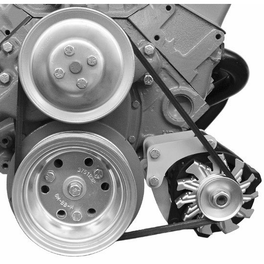 Alternator bracket for the drivers side of a Small Block Chevy with short water pump, is designed to use the smaller Gm alternator with the mounting ear in the 2 o'clock position. It requires less space than the standard GM alternator. Check your dimensions before ordering!!