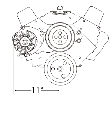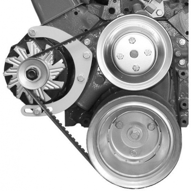 This bracket mounts the alternator just above the pump inlet. Bolts to head and water pump. Works well in low hood applications or for extra space for TPI fuel lines, etc. FITS LONG PUMP ONLY. This bracket can also be used with engines that have no bolt holes in the heads by using optional bracket Part # 215RO