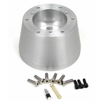 The 1963-1966 and 68 Corvette 6-bolt adaptor is made to adapt a stock 1963-1966 or 68 Corvette steering wheel to the tapered, splined top shaft of an ididit/GM steering column. Adaptor comes with mounting hardware and horn wire. Measures 2.46" tall.