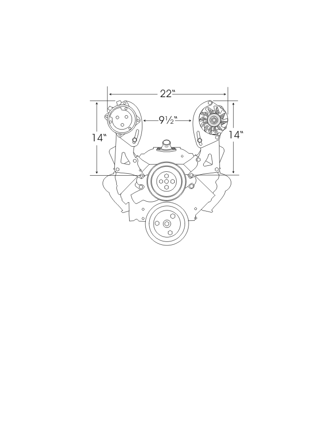 This bracket system is similar to The 230L, but sits about 1 in. higher to clear valve covers up to 4 1/2 in. tall when used with 1986 or earlier heads. Bolts to the heads and water pump.