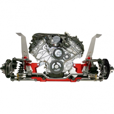 - Eliminates the factory shock towers for more engine bay and header clearance.