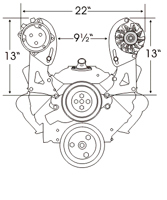 A very versatile street rod style bracket system. Works well with most induction systems. Will clear multiple carbs, fuel injection, etc. Bolts to the head and top water pump bolt holes. Will fit all 1969 and newer heads including Vortec Heads. Will clear up to 3 in. tall center bolt valve covers when used on 1987 and later heads. Will clear up to 3 3/4 in. tall valve covers when used on 1986 and earlier heads.