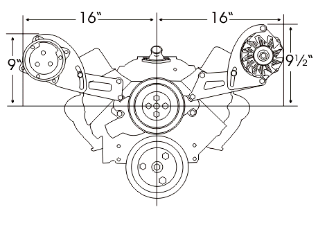 Designed for cars with low hood clearance -- Corvettes, Camaros, etc. This bracket works great on most vehicles with a wide engine compartment-Trucks, 50-60's cars, etc. The bracket bolts to the head and top water pump bolt holes. Fits all 1969 and newer heads Including Vortec heads.
