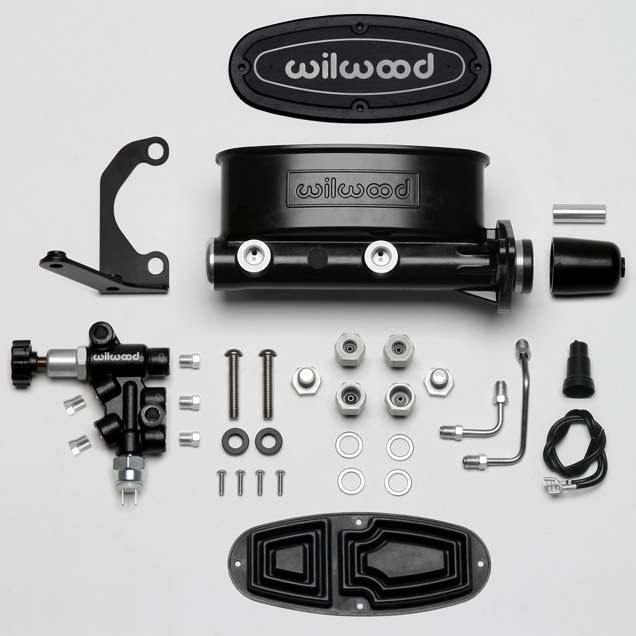 Wilwood has packaged the popular Aluminum Tandem Chamber Master Cylinder with the Combination Proportioning Valve, mounting bracket, fluid tubes and mounting hardware in a kit. Tandem Master Cylinder represents the latest in refinements in brake pressure actuation and fluid control. The slotted flange mounting makes it a simple bolt on for many OE mounts including the popular Chrysler, Corvette, GM, and Ford Mustang bolt patterns and is compatible with manual or power brake system applications. Master cylinders are available in four bores sizes, 7/8”, 15/16", 1.00” or 1-1/8”, and three finishes, standard, ball burnished or black E-coat. The combination proportioning valve substantially simplifies wiring and brake proportioning adjustments on vehicles with custom brake systems. The combination block maintains full isolation between front and rear fluid circuits and is specifically designed to accompany the Tandem Chamber Master Cylinder. The combo valve and bracket are black E-coated for a performance look and long lasting durability. Stainless steel fluid tubes are precision bent with preinstalled stainless tube nuts for a simple bolt-on installation between the Combination Proportioning Valve and the Wilwood Tandem Master Cylinder. Stainless steel button head fasteners thread into the bracket for a simple installation and years of durable, rust-free performance. Simply connect the fluid lines, bleed the system, and you're finished.