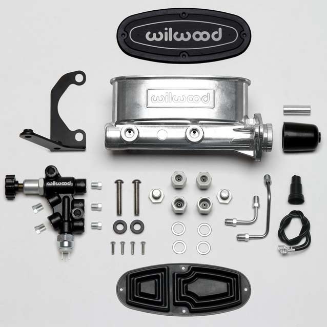 Wilwood has packaged the popular Aluminum Tandem Chamber Master Cylinder with the Combination Proportioning Valve, mounting bracket, fluid tubes and mounting hardware in a kit. Tandem Master Cylinder represents the latest in refinements in brake pressure actuation and fluid control. The slotted flange mounting makes it a simple bolt on for many OE mounts including the popular Chrysler, Corvette, GM, and Ford Mustang bolt patterns and is compatible with manual or power brake system applications. Master cylinders are available in four bores sizes, 7/8”, 15/16", 1.00” or 1-1/8”, and three finishes, standard, ball burnished or black E-coat. The combination proportioning valve substantially simplifies wiring and brake proportioning adjustments on vehicles with custom brake systems. The combination block maintains full isolation between front and rear fluid circuits and is specifically designed to accompany the Tandem Chamber Master Cylinder. The combo valve and bracket are black E-coated for a performance look and long lasting durability. Stainless steel fluid tubes are precision bent with preinstalled stainless tube nuts for a simple bolt-on installation between the Combination Proportioning Valve and the Wilwood Tandem Master Cylinder. Stainless steel button head fasteners thread into the bracket for a simple installation and years of durable, rust-free performance. Simply connect the fluid lines, bleed the system, and you're finished.