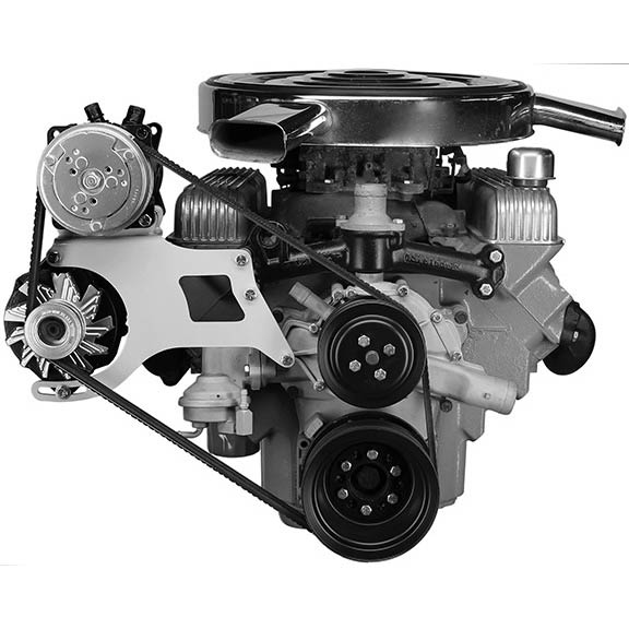 This bracket is designed for the 1963-66 401/425 C.I.D. Buick Riviera. Replaces the original factory A.C. and Alt. brackets to mount an aftermarket Sanden 508 compressor and standard case size GM alternator. Utilizes the factory mounting points off the front head bolt, water manifold and timing chain cover. Requires the use of a stock two groove alternator pulley, three groove crankshaft pulley and a three groove water pump pulley. Bracket uses two readily available V-Belts to double belt the A.C. compressor and alternator. Will work with factory power steering, or part number 420L type II saginaw power steering pump bracket.