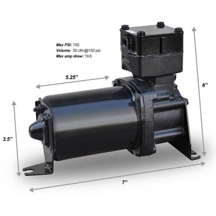 Equipping your ride with a compressor and inflation valves allows the air springs to be adjusted from the vehicle. This makes tuning much simpler. This unit is rated at 150 psi max is Ridtechs most popular compressor. It is proven dependability is the heart of their RidePro compressor systems. This item includes rubber mounting feet, 2" brass fitting for 1/4" airline, electrical connectors and fuse holder with 20 amp fuse.