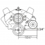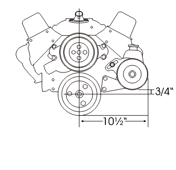 This bracket bolts to the front of the block and front of the head. The pump is mounted in approximately the same position as the factory long water pump bracket without using the exhaust bolt holes.