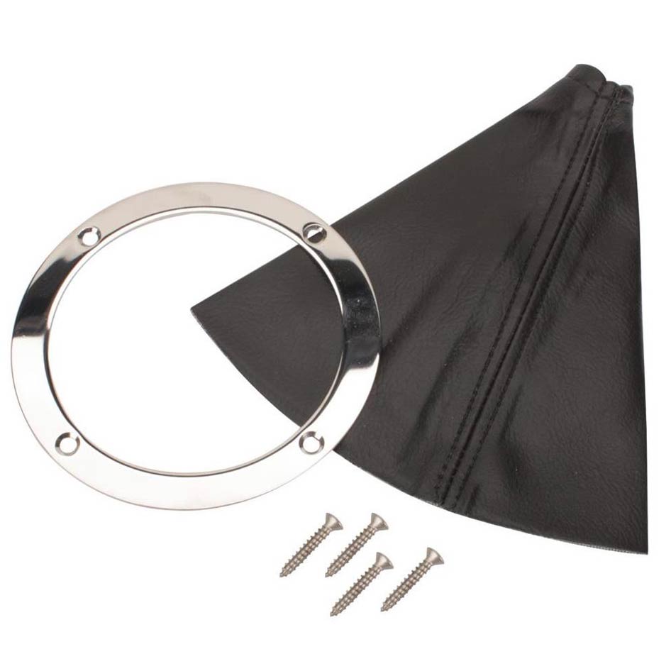 Lokar Shifter Boots are made of black Naugahyde. Set includes a boot and stainless ring with stainless screws. All boots hug the shifter lever and there are no unsightly pull ties or laces.