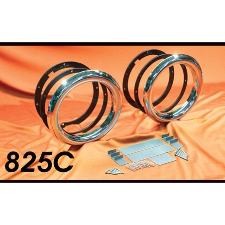Hagan frenched headlamp conversion kits are available in bare steel and chrome. They can be used with standard sealed beam headlamps, blue dot headlamps, or headlamps with built in turn signals. They include all installation and headlamp mounting hardware.