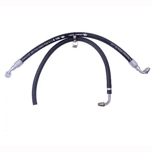 2 Piece OEM style rubber power steering hose kit. Connects Ford power steering pump to Borgeson 800128 Upgrade Box. V-8 applications only.