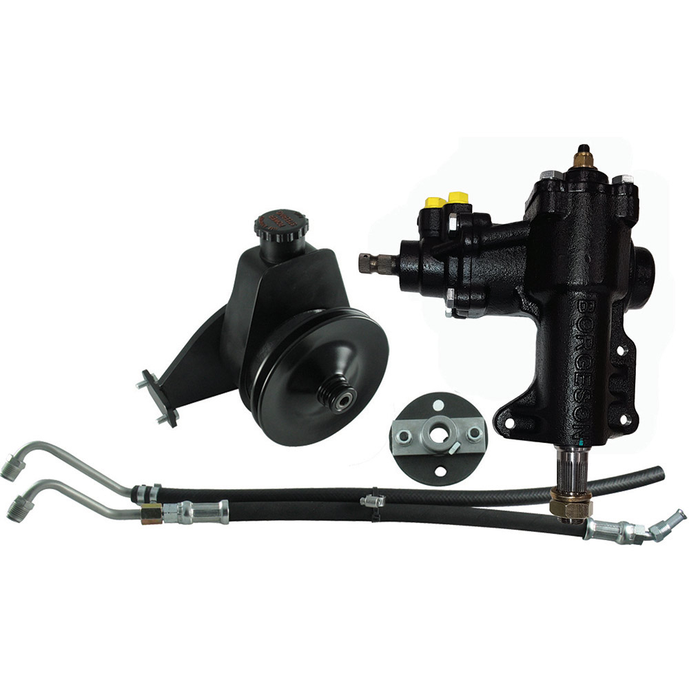 Power Steering Conversion Kit - 1968-70 Mustang Complete Power Steering Conversion Kit. Fits 68-70 Mustangs with Manual Steering and 200 and 250 Inline 6. Includes Includes Box, Pump Hoses, and Rag Joint. Note: Power Conversion Box Will Not Fit with Factory Clutch Linkage.