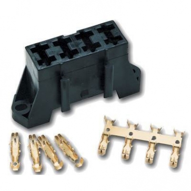 You can "build" your own. Use one or add as many as you wish. The lock together feature makes connections easy. Small size, easy to read and replace fuses. 3-1/4 inch mounting, 2 inches high, 1 inch wide. Includes all brass contacts, holds four ATC-ATO fuses.