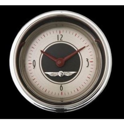 This All American Nickel 2-1/8" Clock. Features a Nickel Face, Brown Numbers, Polished Stainless Finished Low Step Bezel, Curved Glass Len & Red Pointers that give these gauges a classic finish for your hot rod.