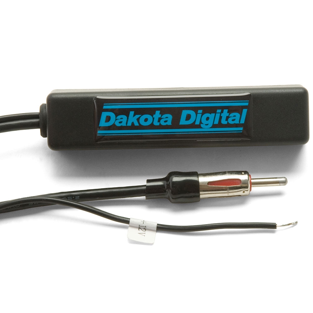 The Dakota Digital ANT-1000 AM/FM (only) electronic antenna is designed to perform as well as a standard rod antenna. No external rod or arial is required. Does Require 12 Volts DC Power. Typical mounting locations are to the top of the windshield or rear window, inside fiberglass body panels, under upholstery, etc. For best reception, it's recommended to mount at least two inches away from any steel, and mounted as high in the vehicle as possible.