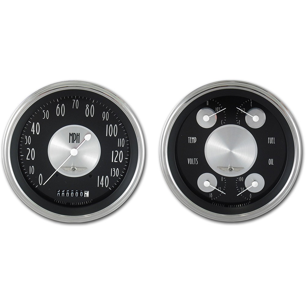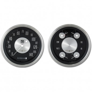 This All American Tradition 3 Gauge Set includes 4-5/8" Speedo & Quad Gauges. Features a Black Face, White Numbers, Polished Stainless High Step Bezel finish, Curved Glass Len & White Pointers that give these gauges a classic finish for your hot rod.