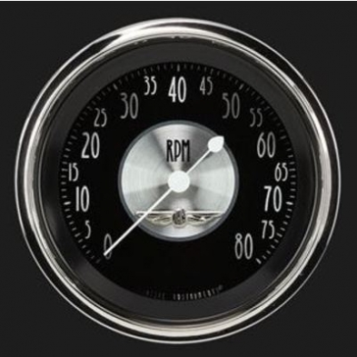 This All American Tradition 3-3/8" Quad Gauge. Features a Black Face, White Numbers, Polished Stainless Low Step Bezel finish, Curved Glass Len & White Pointers that give these gauges a classic finish for your hot rod. Please note this gauge with requires a Oil & Temp senders that is not included.