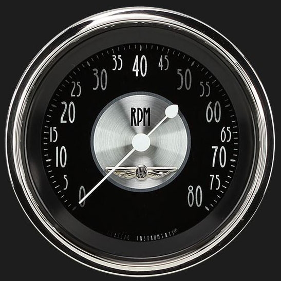 This All American Tradition 3-3/8" 8000 rpm Tach Gauge. Features a Black Face, White Numbers, Polished Stainless Radial Bezel finish, Curved Glass Len & White Pointers that give these gauges a classic finish for your hot rod.