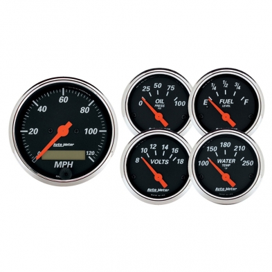 AutoMeter has brought together the most popular gauges into a simple kit. The kit includes a speedometer, water temperature, oil pressure, fuel level, and voltmeter. All senders included where applicable.
