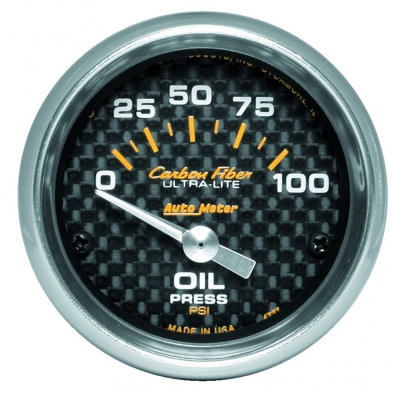 2 1/16" OIL PRESS, 0-100 PSI, SSE, CARBON FIBER