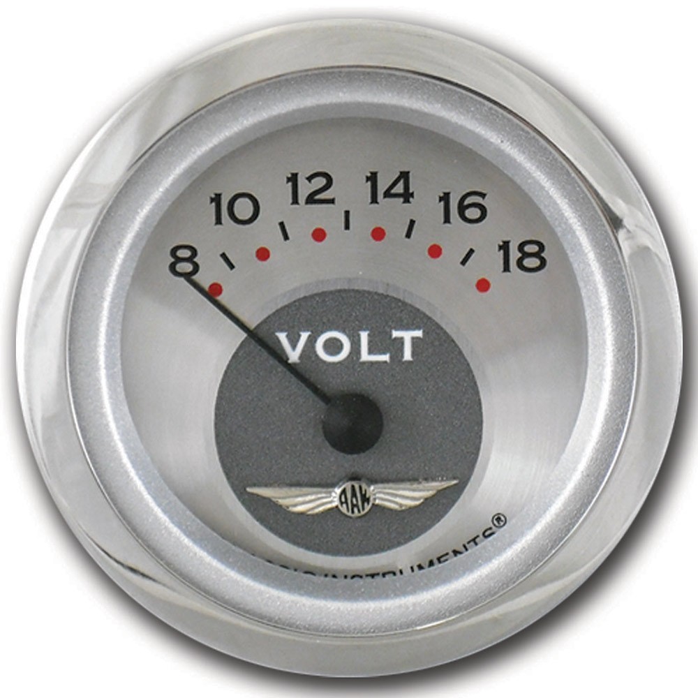 This All American Volt gauge. Features a Silver Face, Black Numbers, Polished Stainless Radial Bezel, Curved Glass Len & Black Pointers that give these gauges a classic finish for your hot rod.