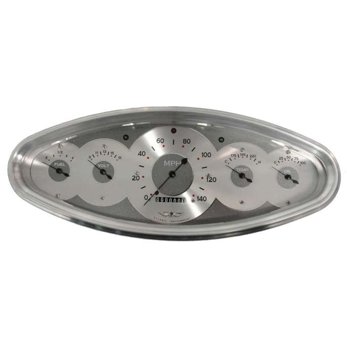 This All American 5 Gauge Package includes Speedo, Fuel, Oil, Temp & Volt gauge Combo. Features a Silver Face, Black Numbers in an polished aluminum housing and Black Pointers that give these gauges a classic finish for your hot rod.