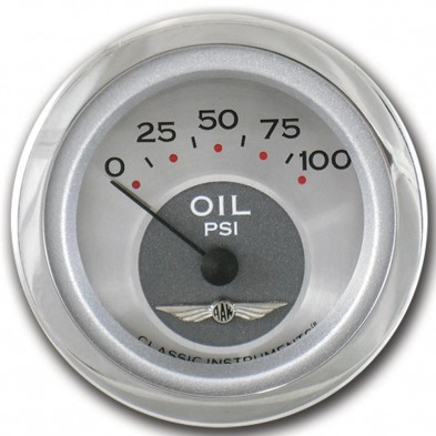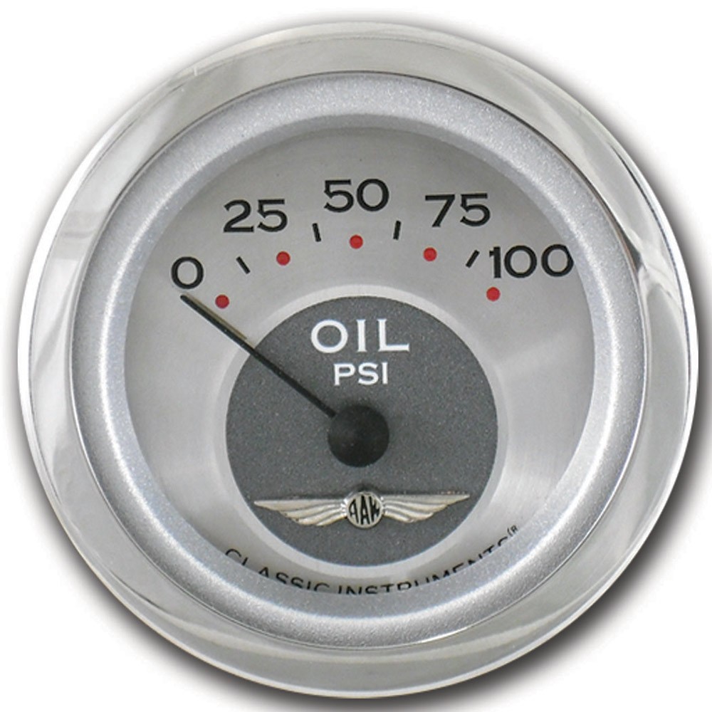 This All American Oil Pressure gauge. Features a Silver Face, Black Numbers, Polished Stainless Radial Bezel, Curved Glass Len & Black Pointers that give these gauges a classic finish for your hot rod.