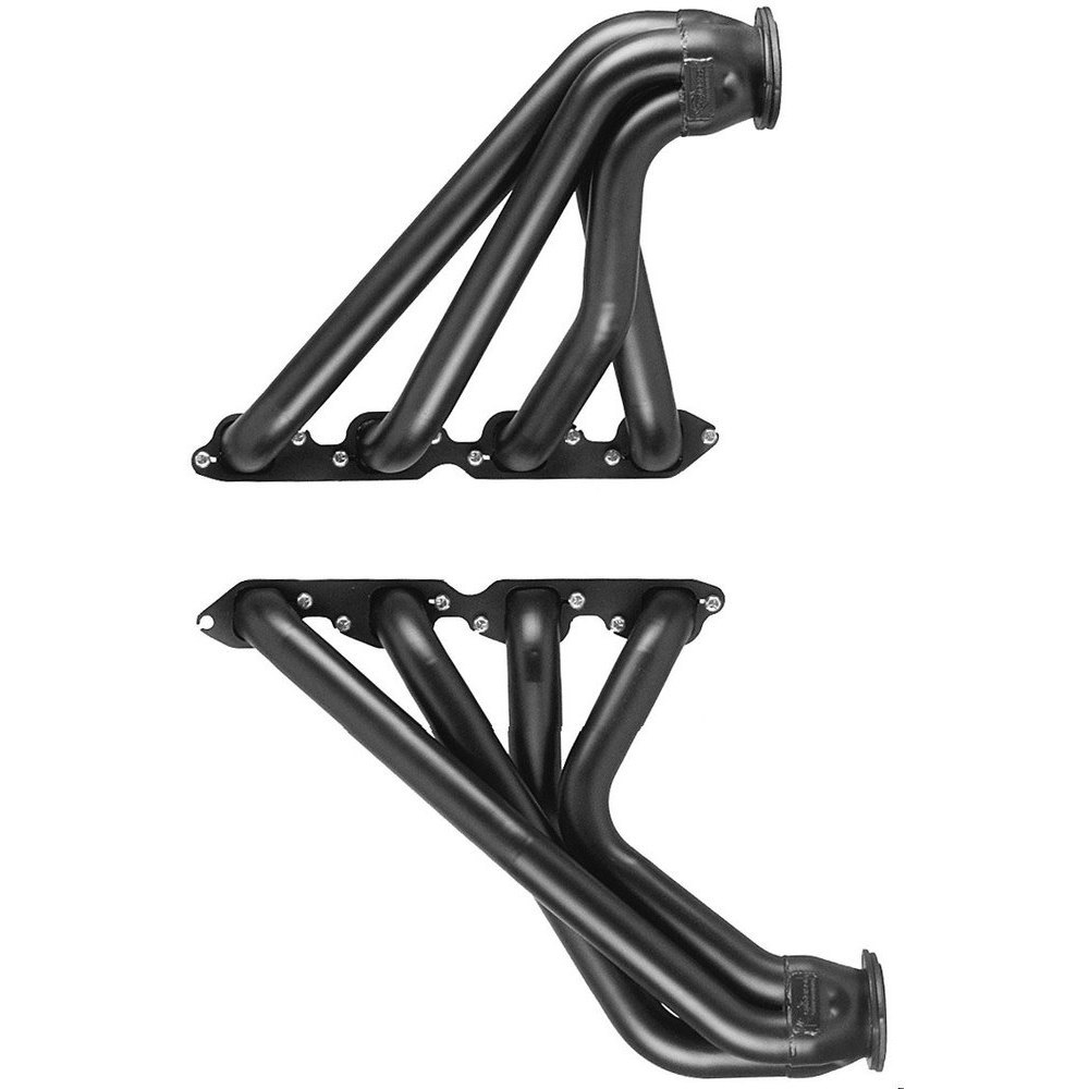 The BB56 header are designed to fit Big Block Chevrolet engines in 1955-57 Chevy applications. The BB56 works with either stock manual or GM 605 power steering. It fits all iron cylinder heads and both sides exit above the bottom of the oil pan to eliminate ground clearance problems.