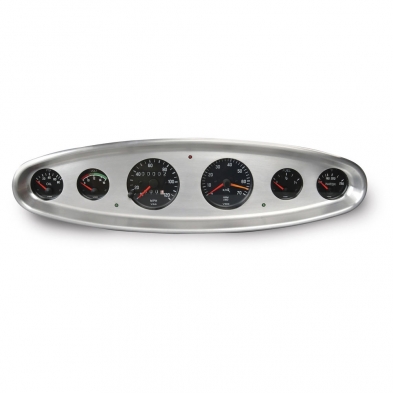 The Oval Billet Aluminum Dash Insert features a recessed face design. Gauges mount from back of insert. Two green 12 volt turn signal LEDS and one red 12 volt high beam LED included. Holding clips and screws included. Gauges not included.