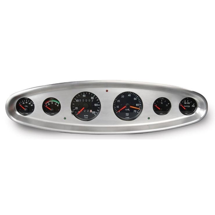 6-Gauge Brushed Aluminum Dash Insert for 3-3/8" S. W. (Excluding Winged Series) / Each