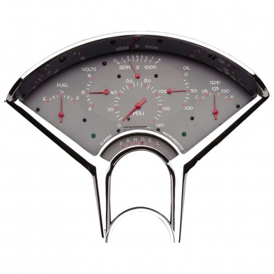 High beam and turn signal lights are included. A gear selection indicator insert for automatic or overdrive transmission is optional. This package fits your stock gauge bezel.