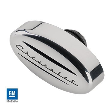 Retro Oval Valve Cover Breather w/Chevrolet Script - Polish