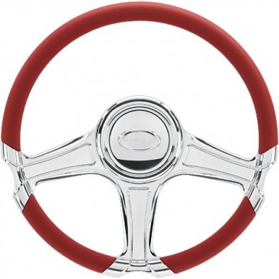 Octane Style Steering Wheel - 14" Polished Aluminum 3 Spoke Wheel with Milled Finger Notches.
