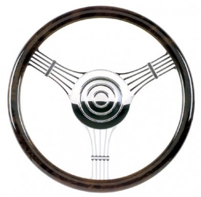 Banjo Style Steering Wheel - 14" Polished Aluminum 3 Spoke Wheel with Milled Finger Notches.