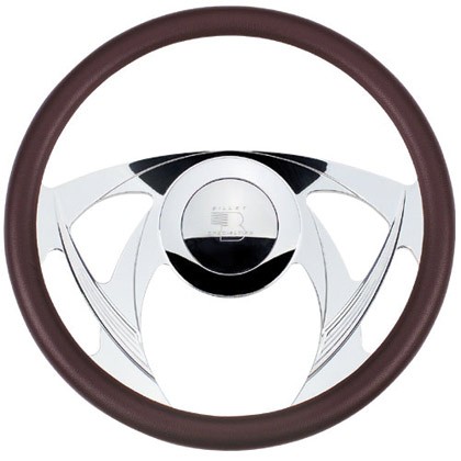 Billet Specialties half wrap steering wheels are the ultimate dress up option for your special vehicle's interior! This wheel is shown with a red leather half wrap ring and a standard size Billet Logo horn button.