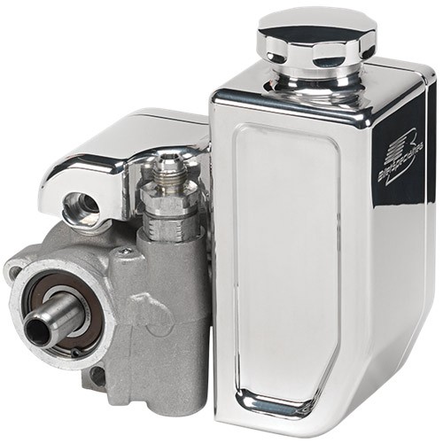 Billet Specialties' billet bolt-on reservoir is a machining marvel with innovative features such as threaded double o-ring reservoir and hose attachments providing secure leak-free service. Precision machined internal baffling eliminates foaming and is topped off with a vented notch-grip.